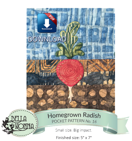 We love chopped radishes in our Tacos – and radish sandwiches. Add this cute radish applique to apron pockets and potholders. Or add it to a collection of other veggie pocket patterns on your kitchen wall.