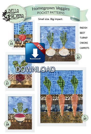 Collect all five Homegrown Veggie Pocket Patterns for the price of four! Transform your kitchen with these adorable applique patterns.